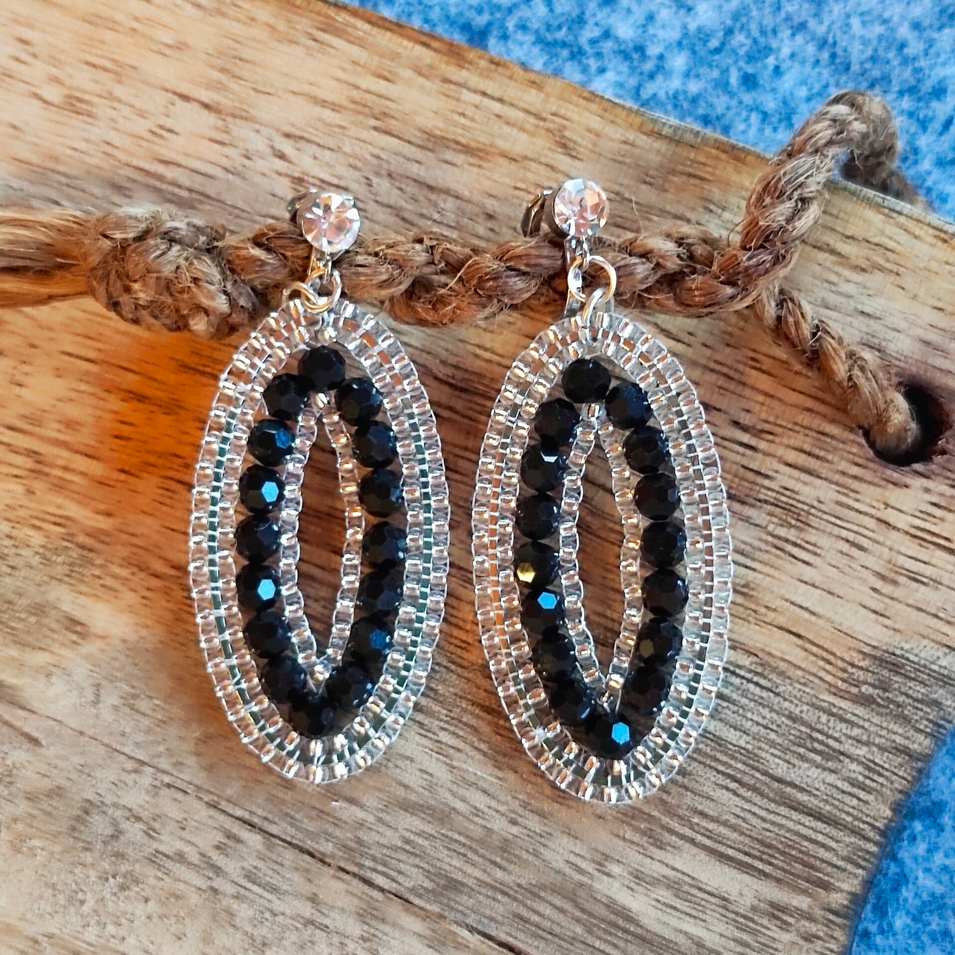 Perlenohhrringe oval / schwarz - silber / Ohrclip